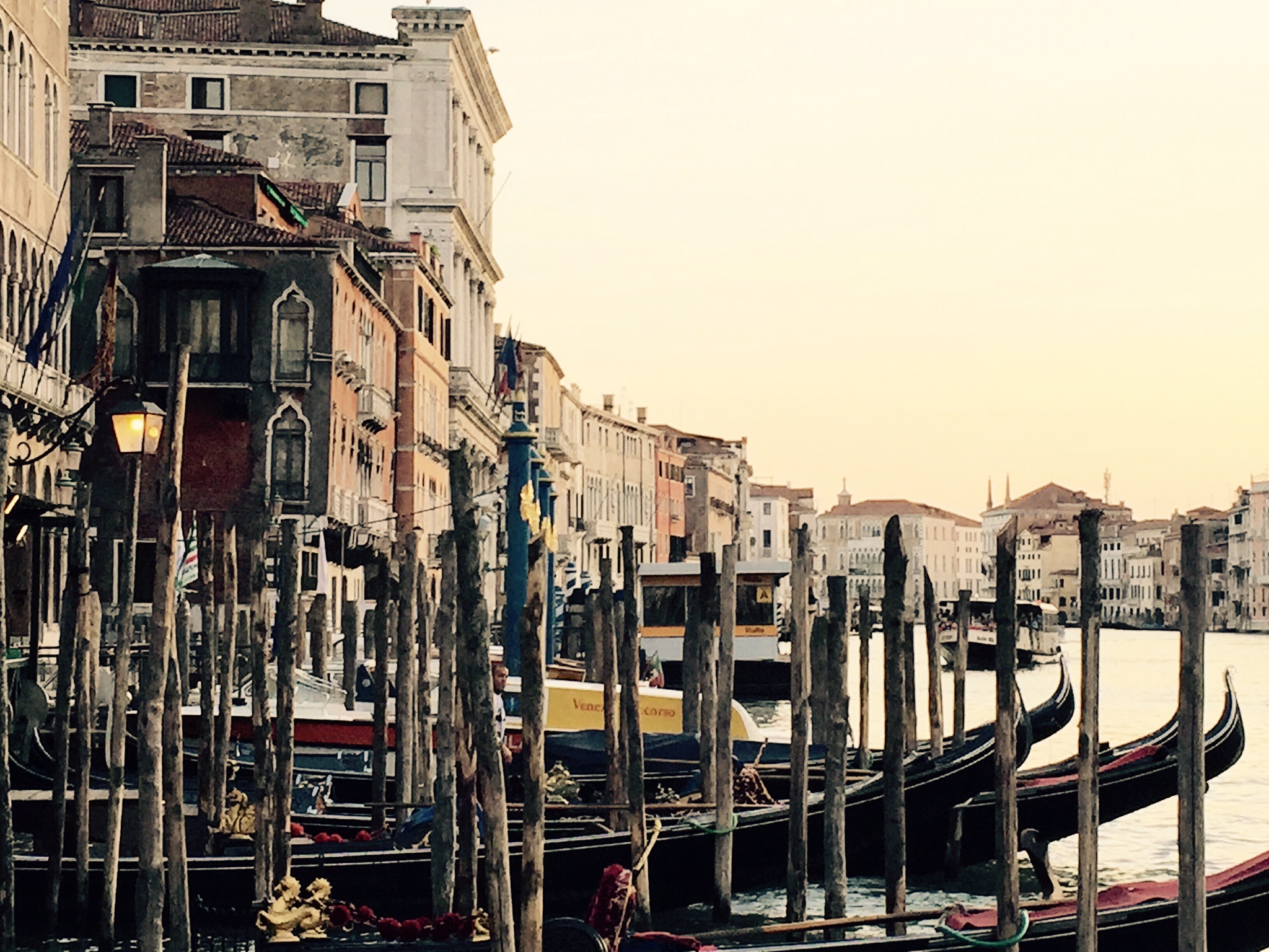 Twilight is the most beautiful time in Venice; filled with the sounds of the gondoliers sweetly singing, and the glistening of the canals next to the gothic pastel colored palaces.