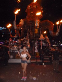 Sour: The art moves through the space in parades, and is intertwined in every area that you walk by, sit at, or swing over. Some art is literally on fire, adding more heat to the already hot venue.